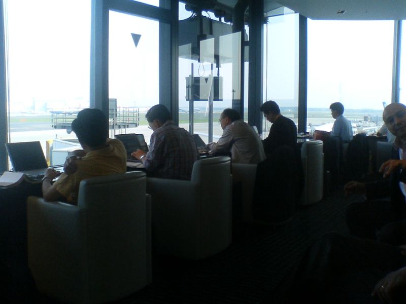 ラウンジに入ったのが夕方前だったので、中国便、アメリカ便の待合い客でにぎわっていました。